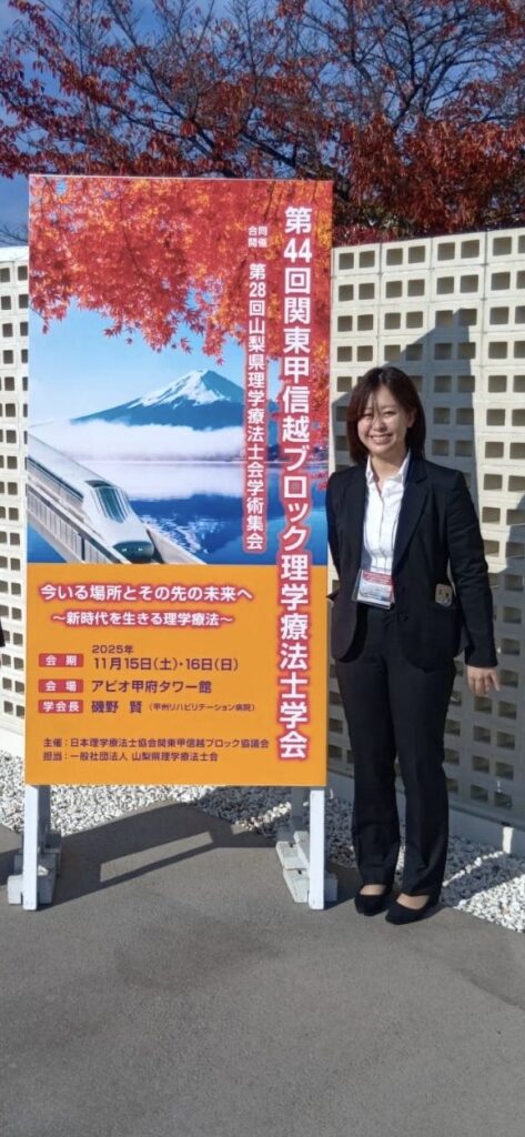 第44回関東甲信越ブロック理学療法士学会でPTが症例報告 2025年11月26日 最終更新日時 : 2025年11月26日 akaogi@cmed.showa-u.ac.jp 山梨県のアピオ甲府タワー館にて、第44回関東甲信越ブロック理学療法士学会が開催され、昭和医科大学病院附属東病院からPT2名が参加し、症例報告を行いました。 PT① PT②